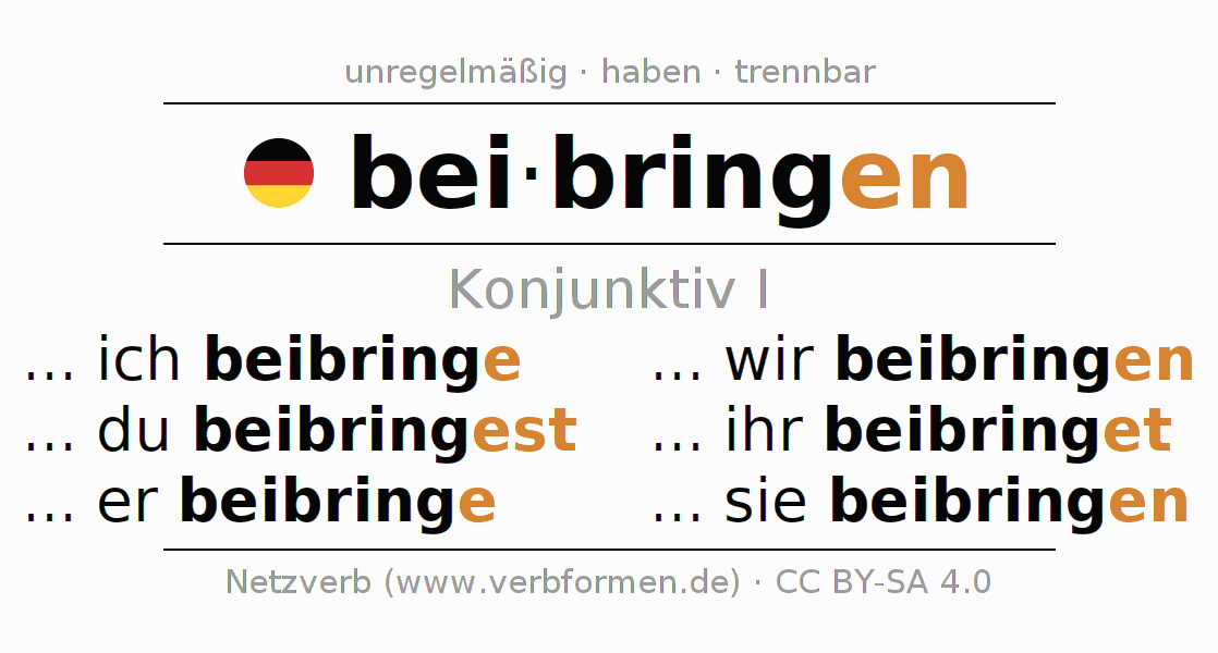 Das Verb beibringen vollständig in allen Personen und Numeri im Konjunktiv Präsens konjugiert