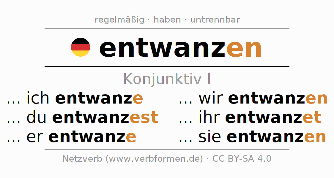 Das Verb entwanzen vollständig in allen Personen und Numeri im Konjunktiv Präsens konjugiert