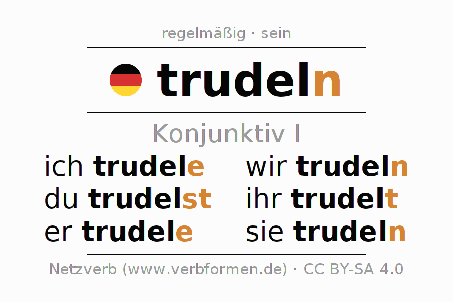 Das Verb trudeln vollständig in allen Personen und Numeri im Konjunktiv Präsens konjugiert