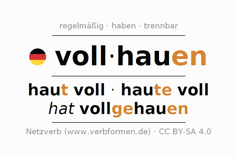 Das Verb vollhauen vollständig in allen Personen und Numeri im Konjunktiv Präsens konjugiert