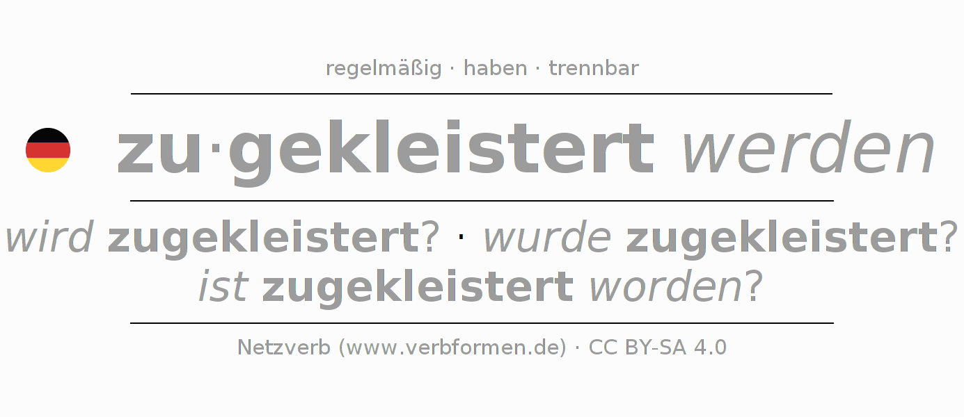 Das Verb zukleistern vollständig in allen Personen und Numeri im Konjunktiv Präsens konjugiert