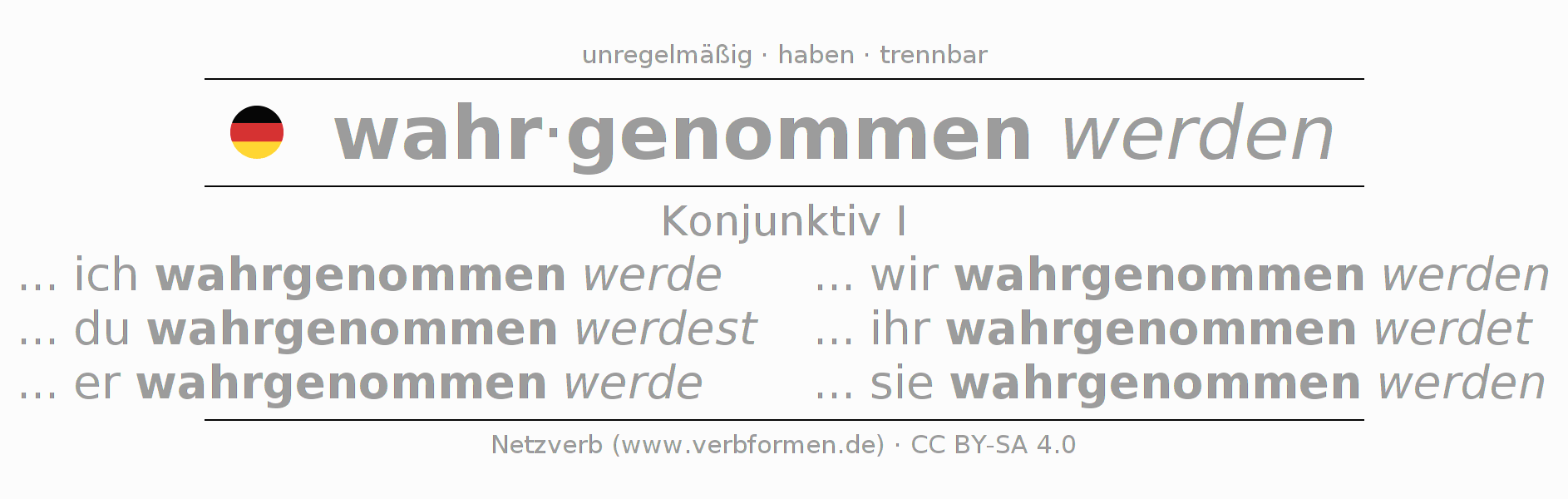 Das Verb wahrnehmen vollständig in allen Personen und Numeri im Konjunktiv Präsens konjugiert