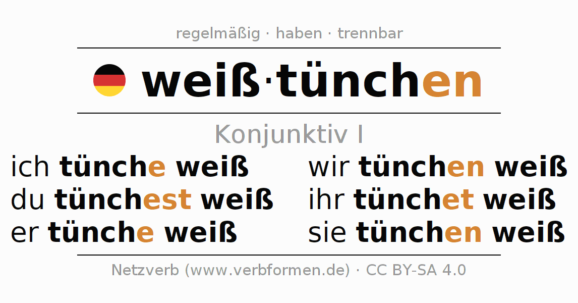 Das Verb weißtünchen vollständig in allen Personen und Numeri im Konjunktiv Präsens konjugiert