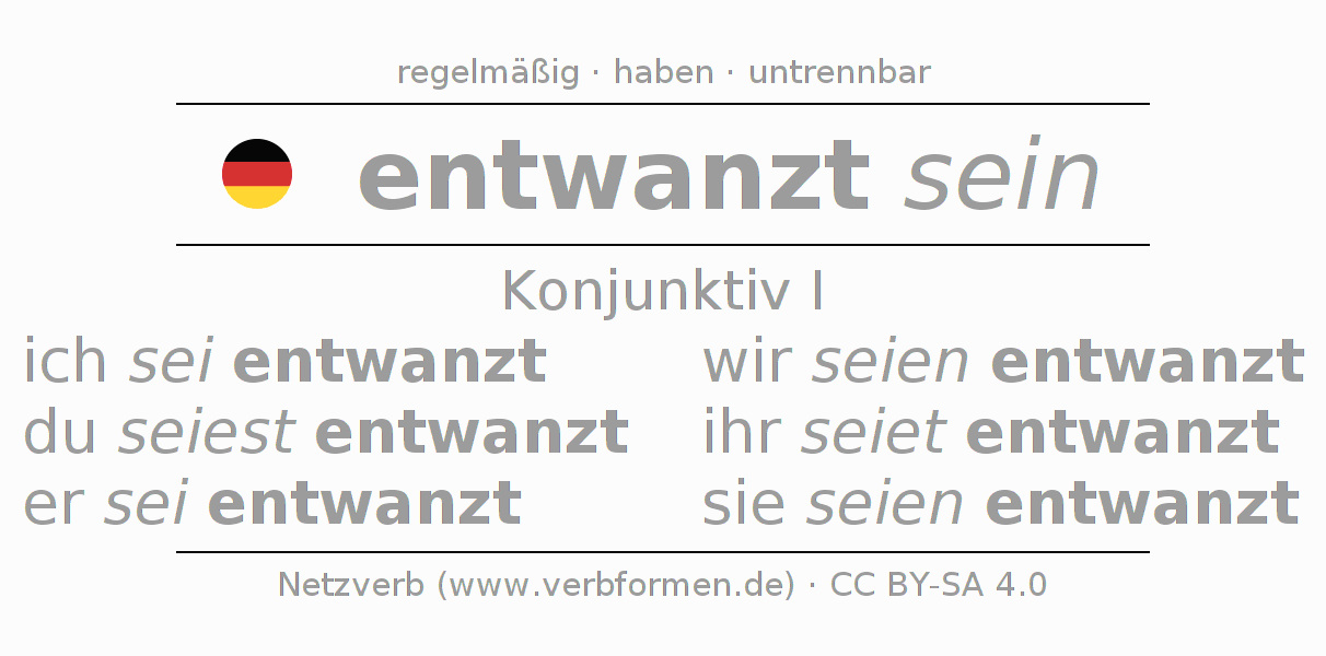 Das Verb entwanzen vollständig in allen Personen und Numeri im Konjunktiv Präsens konjugiert