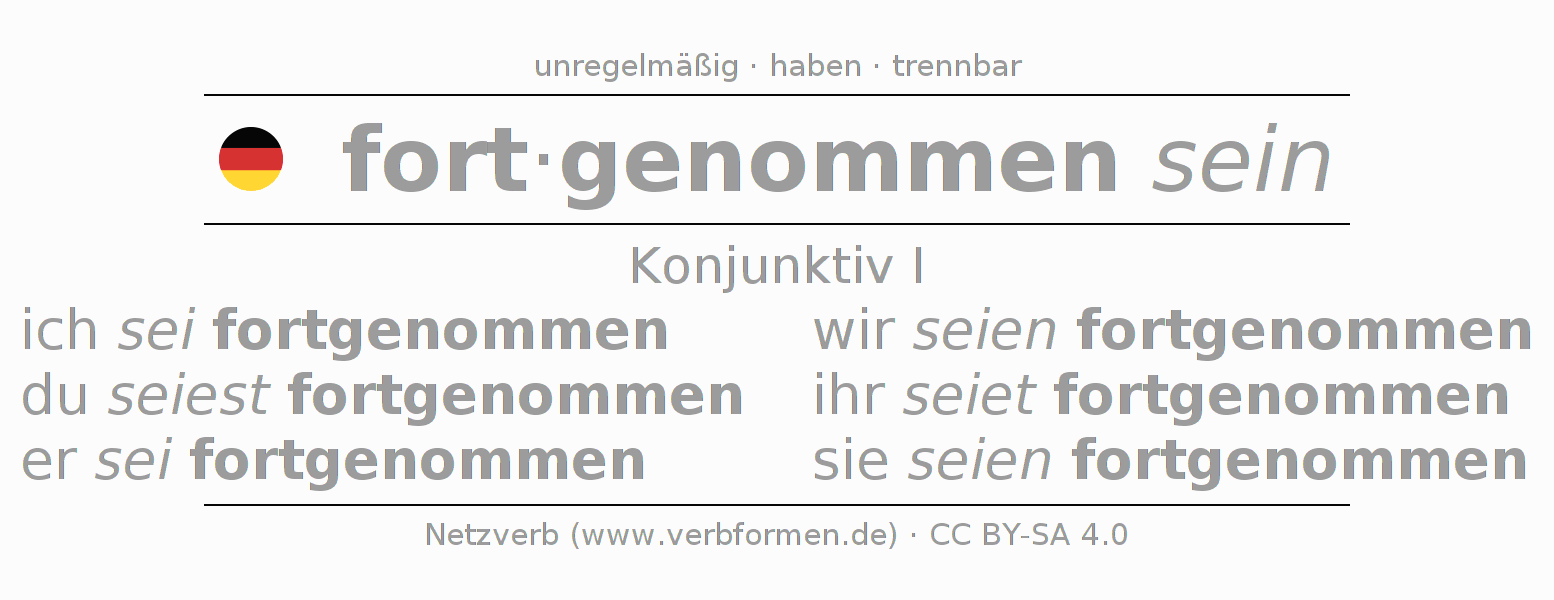 Das Verb fortnehmen vollständig in allen Personen und Numeri im Konjunktiv Präsens konjugiert