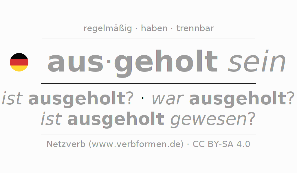 Die Konjugation von ausholen im Konjunktiv Präsens Möglichkeitsform Zustandspassiv ist: sei ich ausgeholt?, seiest du ausgeholt?, sei er ausgeholt?, seien wir ausgeholt?, seiet ihr ausgeholt?, seien sie ausgeholt?.Die Bildung dieser Formen entspricht gewissen grammatischen Regeln. So auch die Vorgaben zur Konjugation der einfachen Verbformen von ausholen im Konjunktiv I. Kommentare ☆