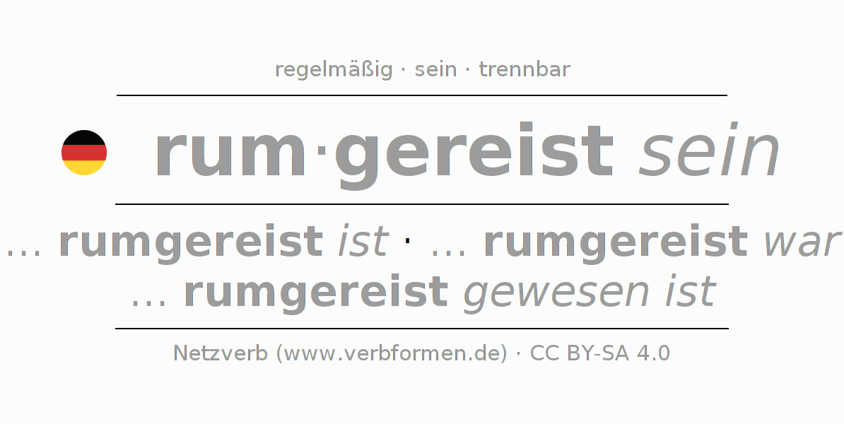 Das Verb rumreisen vollständig in allen Personen und Numeri im Konjunktiv Präsens konjugiert