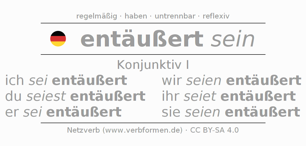 Das Verb sich entäußern vollständig in allen Personen und Numeri im Konjunktiv Präsens konjugiert