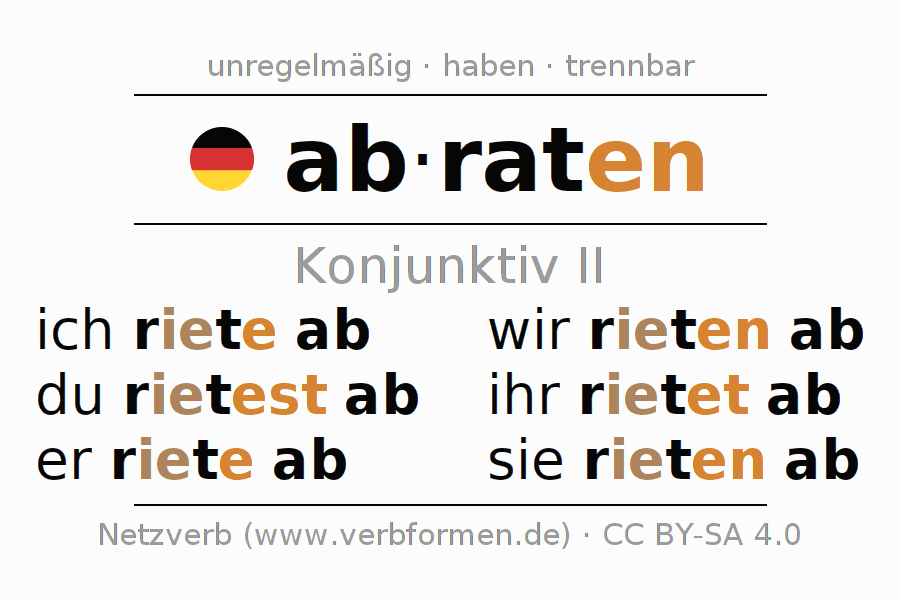 Das Verb abraten vollständig in allen Personen und Numeri im Konjunktiv Präteritum konjugiert