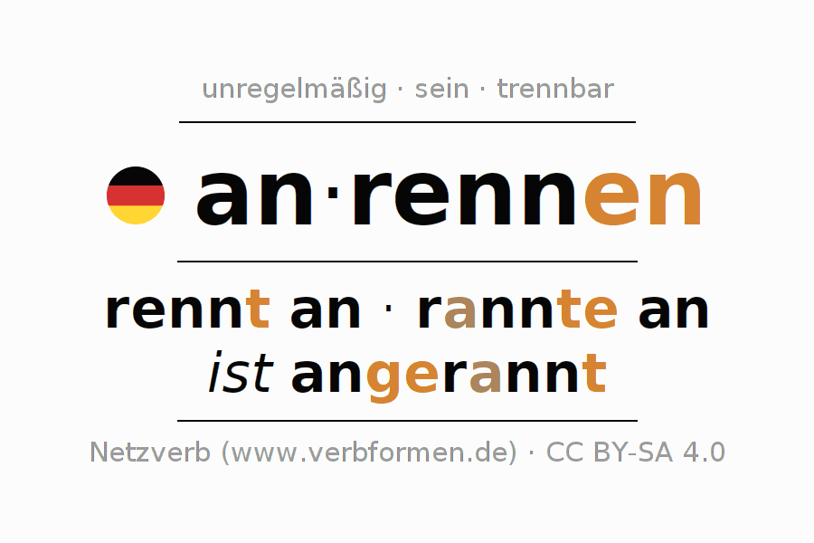 Das Verb anrennen vollständig in allen Personen und Numeri im Konjunktiv Präteritum konjugiert