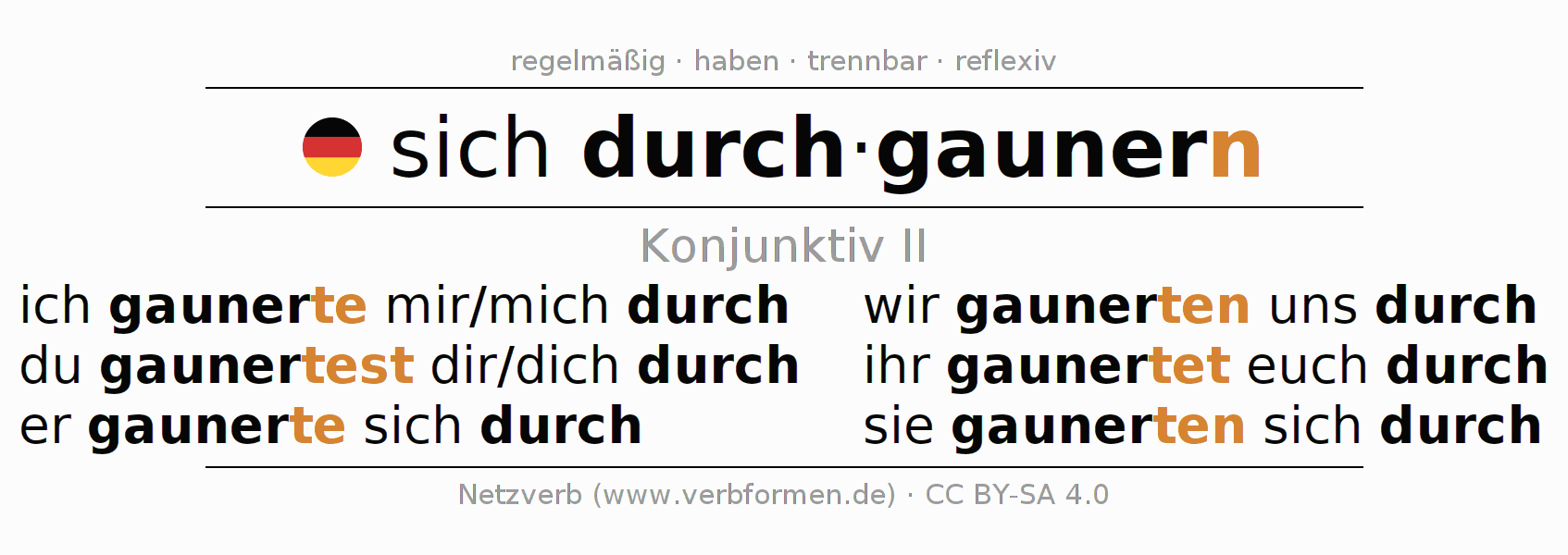 - Wie konjugiert man durchgaunern im Konjunktiv II?