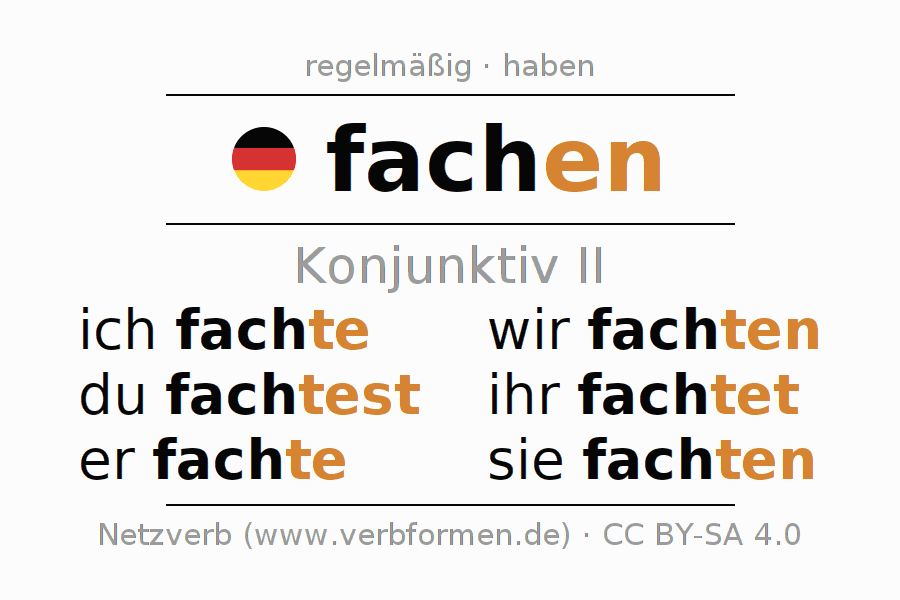 Das Verb fachen vollständig in allen Personen und Numeri im Konjunktiv Präteritum konjugiert
