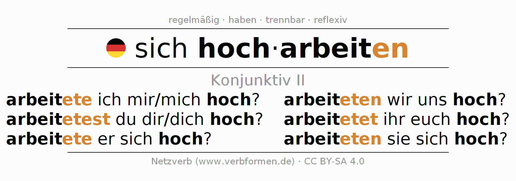 Verbformen im Konjunktiv II von sich hocharbeiten