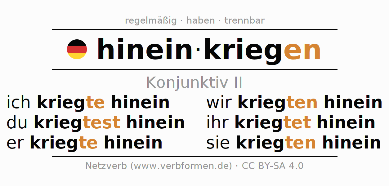 Das Verb hineinkriegen vollständig in allen Personen und Numeri im Konjunktiv Präteritum konjugiert