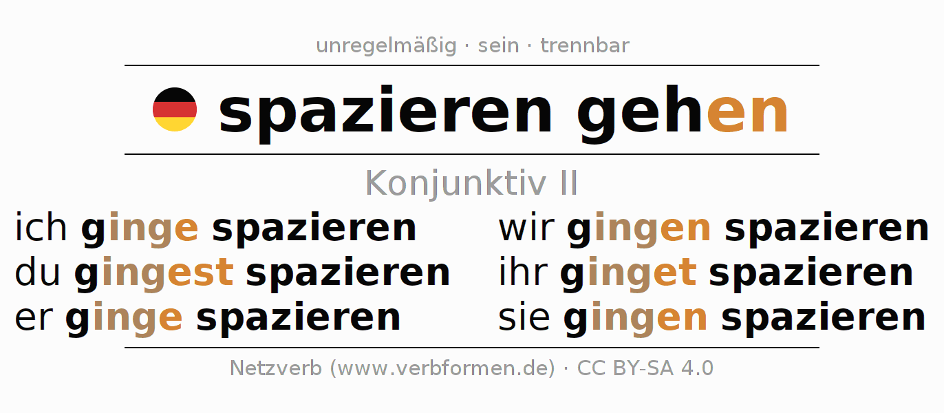 - Wie konjugiert man spazierengehen im Konjunktiv II?