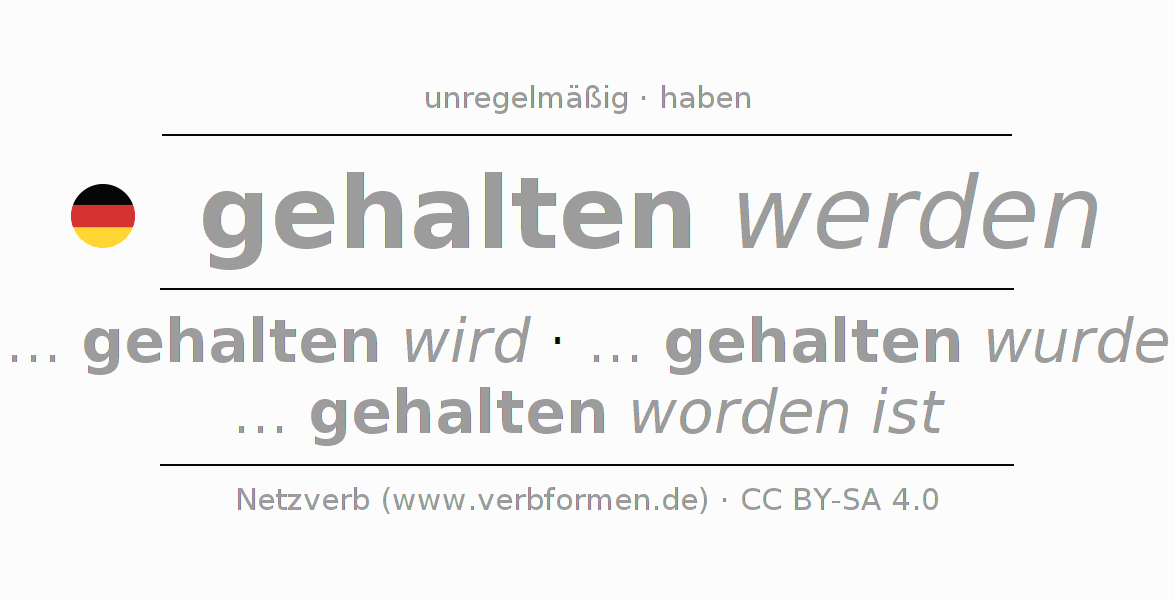 Die Konjugation von halten im Konjunktiv Präteritum Möglichkeitsform Vorgangspassiv ist: ... ich gehalten würde, ... du gehalten würdest, ... er gehalten würde, ... wir gehalten würden, ... ihr gehalten würdet, ... sie gehalten würden.Die Bildung dieser Formen entspricht gewissen grammatischen Regeln. So auch die Vorgaben zur Konjugation der einfachen Verbformen von halten im Konjunktiv II. 3Kommentare ☆4.5