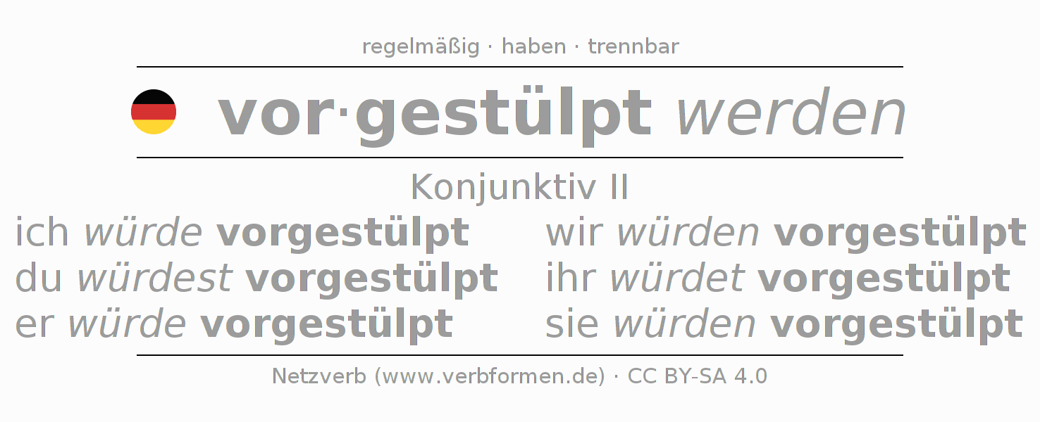 Das Verb vorstülpen vollständig in allen Personen und Numeri im Konjunktiv Präteritum konjugiert