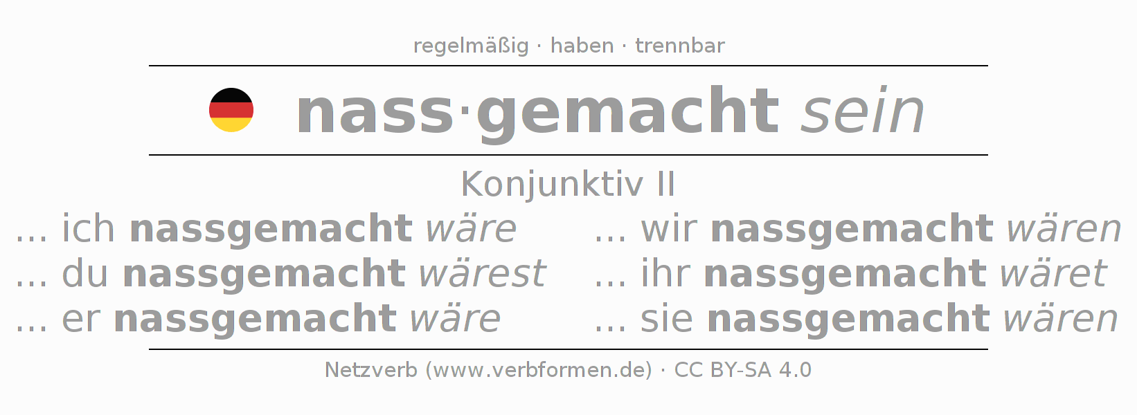 Das Verb nassmachen vollständig in allen Personen und Numeri im Konjunktiv Präteritum konjugiert