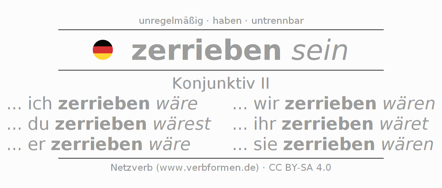 Das Verb zerreiben vollständig in allen Personen und Numeri im Konjunktiv Präteritum konjugiert