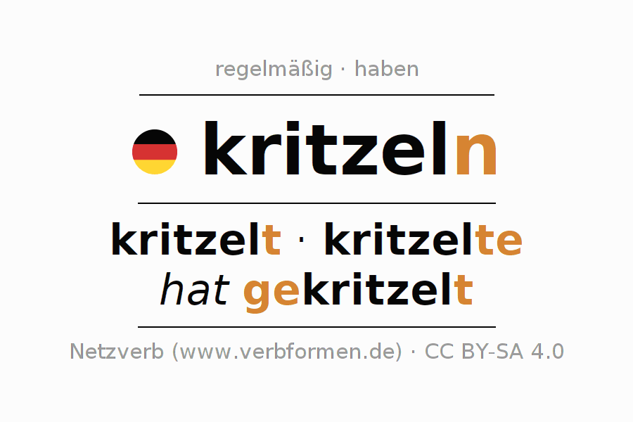 - Perfekt: ich habe gekritzelt, du habest gekritzelt, er habe gekritzelt, wir haben gekritzelt, ihr habet gekritzelt, sie haben gekritzelt