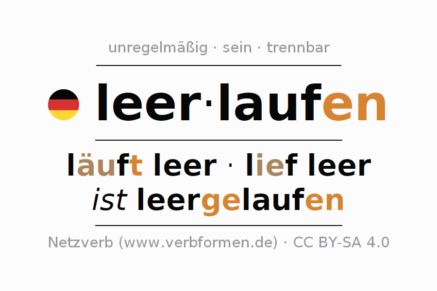 - Präsens: lauf(e) (du) leer, laufen wir leer, lauft (ihr) leer, laufen Sie leer