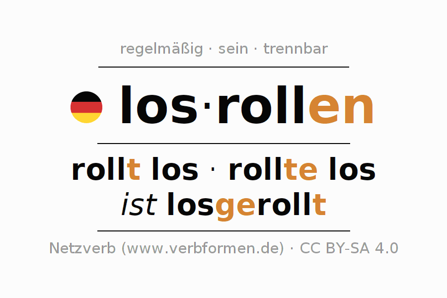 - Präsens: roll(e) (du) los, rollen wir los, rollt (ihr) los, rollen Sie los