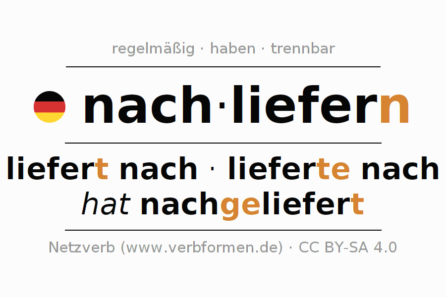 - Präsens: lief(e)r(e) (du) nach, liefern wir nach, liefert (ihr) nach, liefern Sie nach