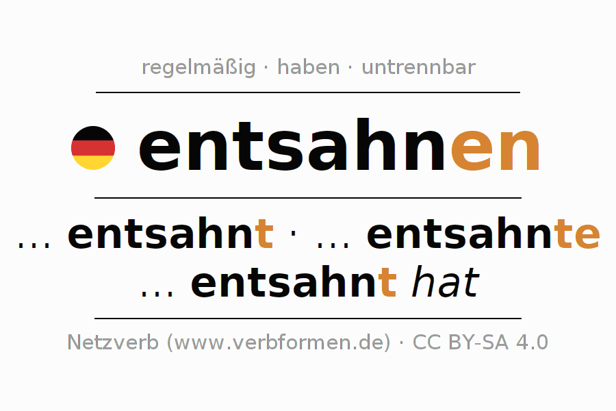 Das Verb entsahnen konjugiert im Indikativ Aktiv in den Zeitformen Gegenwart, Vergangenheit und Zukunft
