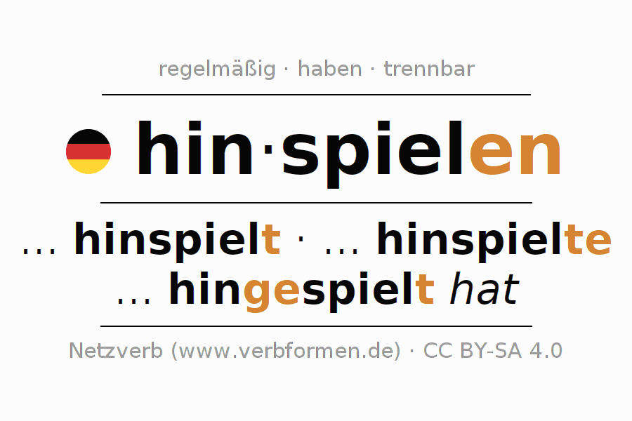 - Präsens: spiel(e) (du) hin, spielen wir hin, spielt (ihr) hin, spielen Sie hin