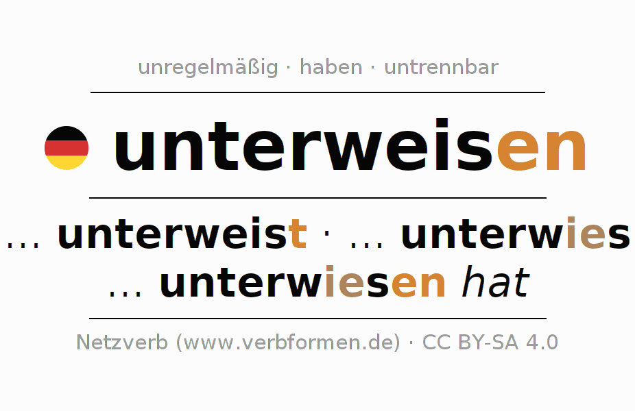 - Präsens: unterweis(e) (du), unterweisen wir, unterweist (ihr), unterweisen Sie