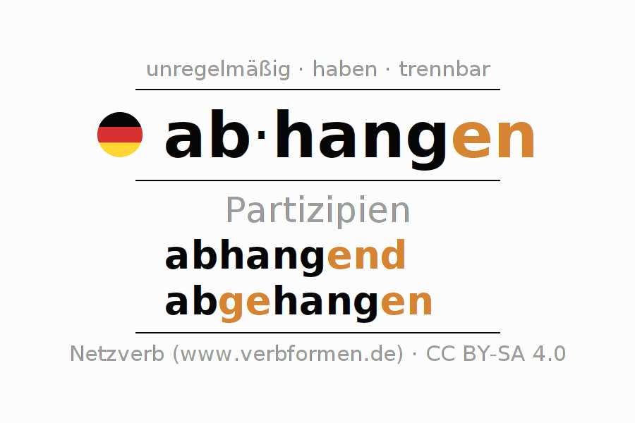 Das Verb abhangen vollständig in allen Personen und Numeri im Partizip Präsens Perfekt konjugiert