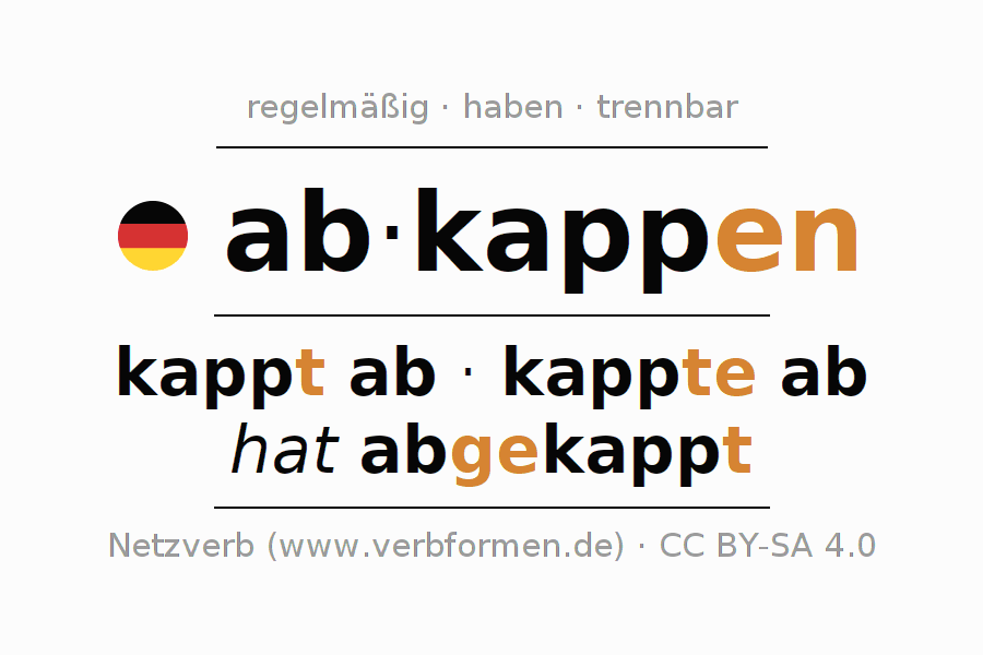 - ich kappe ab (1. PersonSingular)
