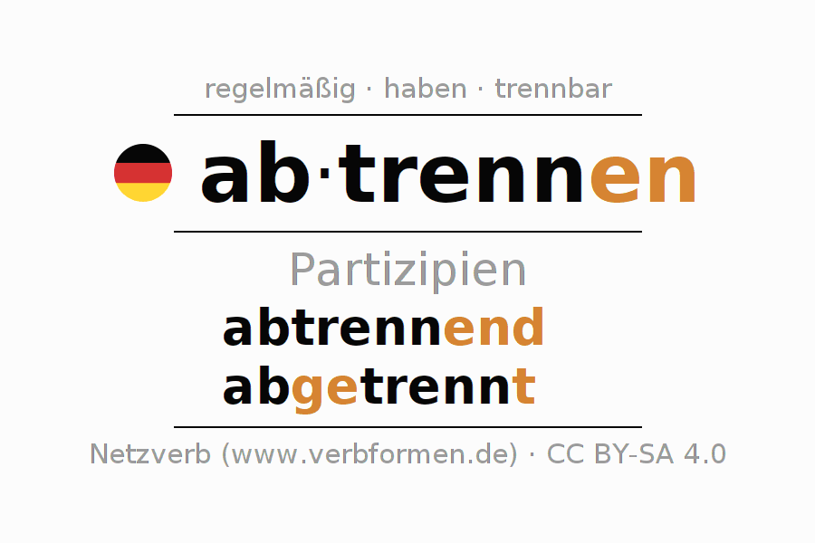 Das Verb abtrennen vollständig in allen Personen und Numeri im Partizip Präsens Perfekt konjugiert