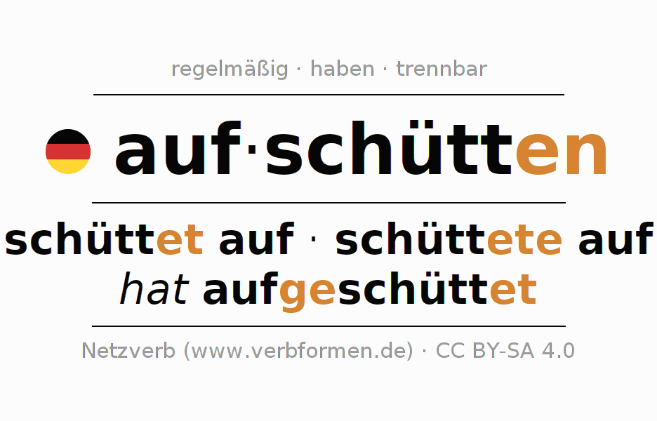 - ich schütte auf (1. PersonSingular)