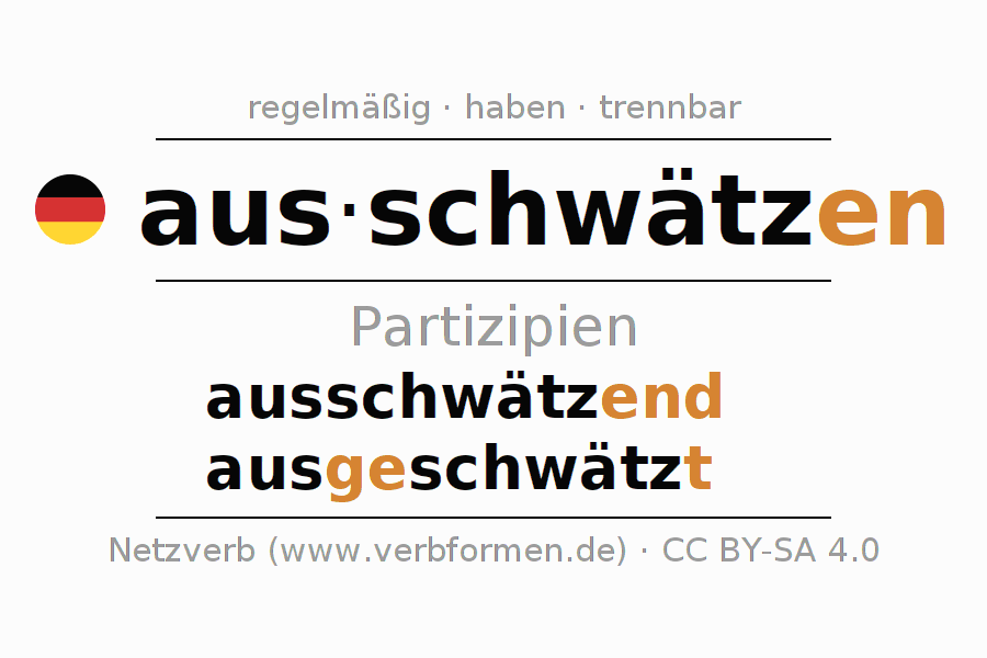 Das Verb ausschwätzen vollständig in allen Personen und Numeri im Partizip Präsens Perfekt konjugiert