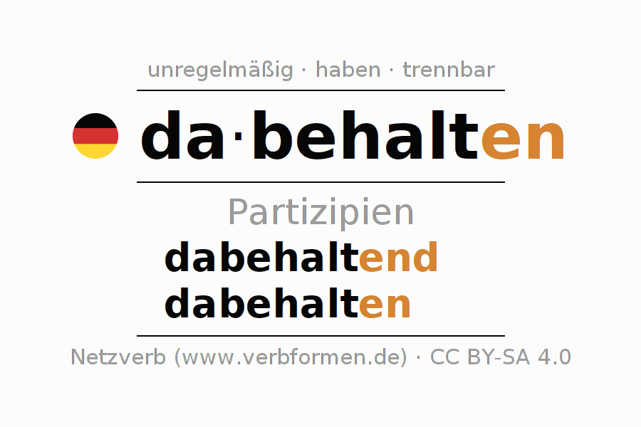Das Verb dabehalten vollständig in allen Personen und Numeri im Partizip Präsens Perfekt konjugiert