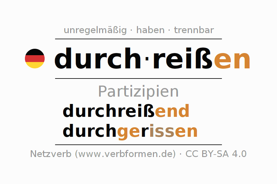 Das Verb durchreißen vollständig in allen Personen und Numeri im Partizip Präsens Perfekt konjugiert