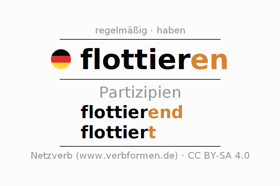 Das Verb flottieren vollständig in allen Personen und Numeri im Partizip Präsens Perfekt konjugiert