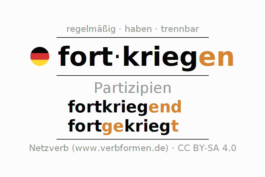 Das Verb fortkriegen vollständig in allen Personen und Numeri im Partizip Präsens Perfekt konjugiert