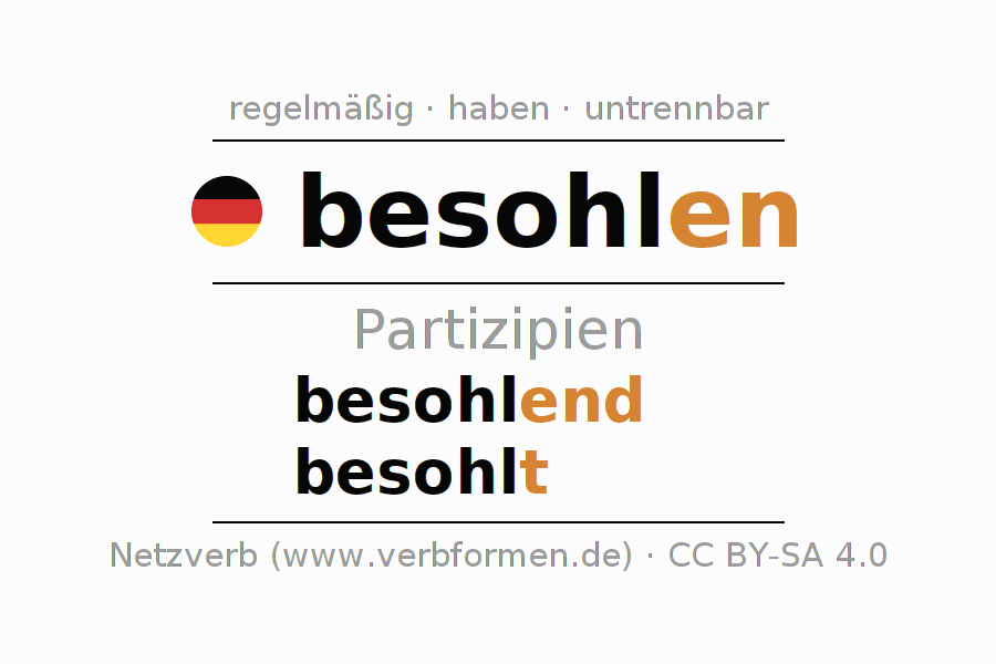 Die Konjugation von besohlen im Partizip Präsens Perfekt Mittelwort Aktiv ist: besohlend, besohlt.Die Bildung dieser Formen entspricht gewissen grammatischen Regeln. So auch die Vorgaben zur Konjugation der einfachen Verbformen von besohlen im Partizip. Kommentare ☆