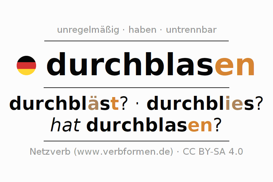 Das Verb durchblasen vollständig in allen Personen und Numeri im Partizip Präsens Perfekt konjugiert