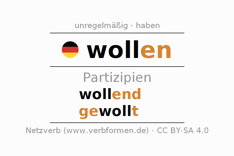 Die Konjugation von wollen im Partizip Präsens Perfekt Mittelwort Aktiv ist: wollend, gewollt.Die Bildung dieser Formen entspricht gewissen grammatischen Regeln. So auch die Vorgaben zur Konjugation der einfachen Verbformen von wollen im Partizip. 15Kommentare ☆5.0