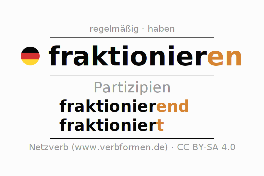 Das Verb fraktionieren vollständig in allen Personen und Numeri im Partizip Präsens Perfekt konjugiert