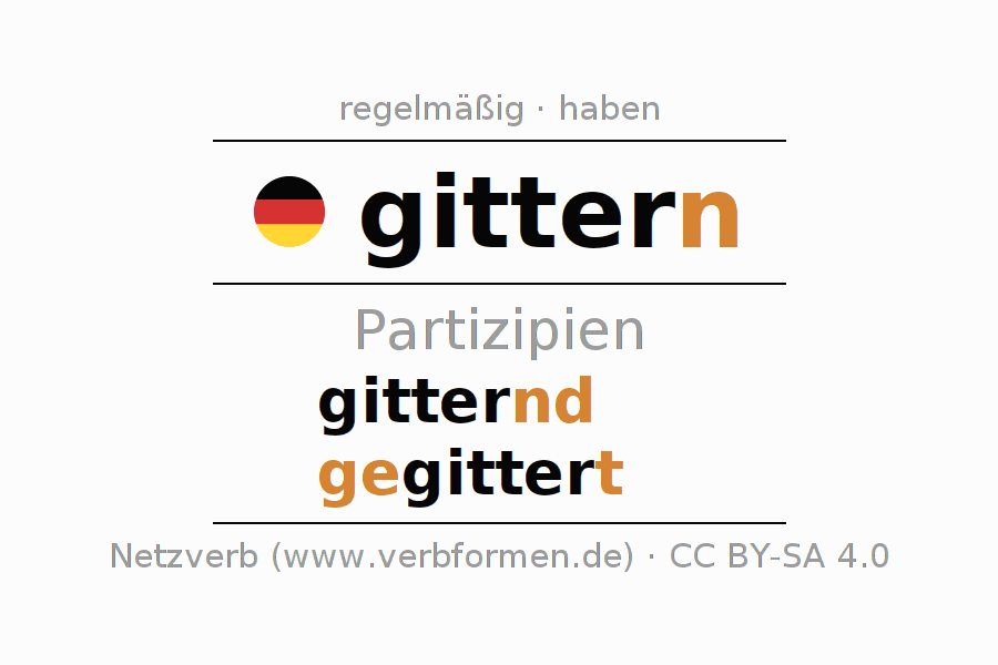 Das Verb gittern vollständig in allen Personen und Numeri im Partizip Präsens Perfekt konjugiert