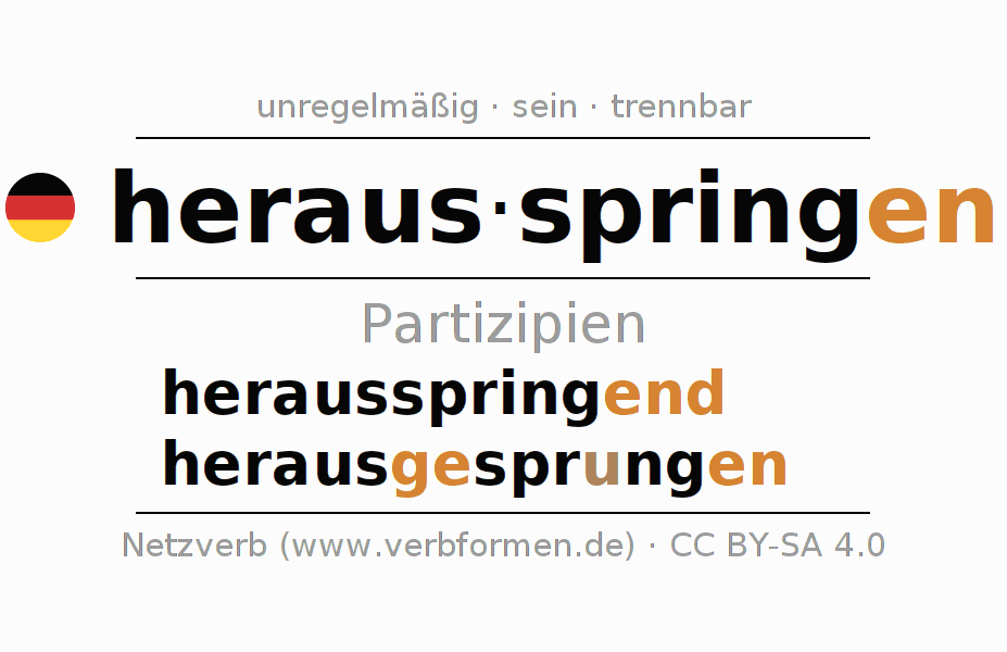 Das Verb herausspringen vollständig in allen Personen und Numeri im Partizip Präsens Perfekt konjugiert