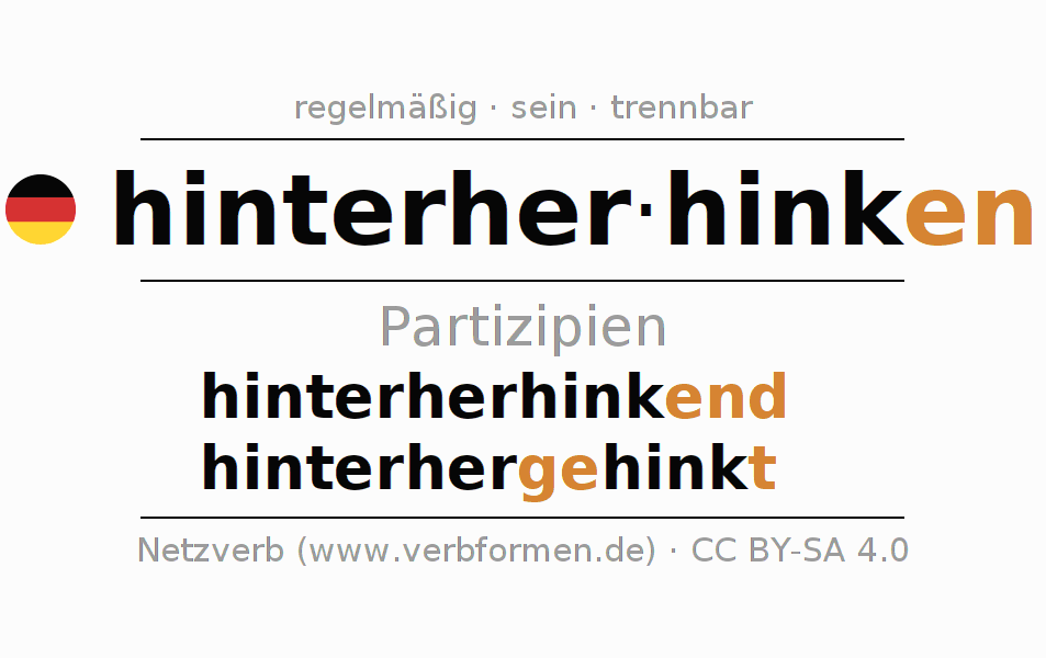 Das Verb hinterherhinken vollständig in allen Personen und Numeri im Partizip Präsens Perfekt konjugiert