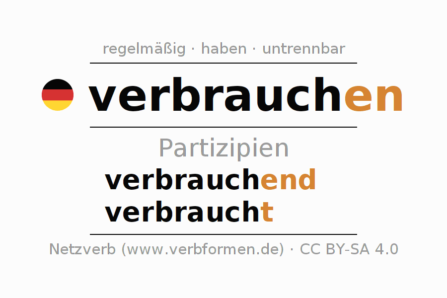 Das Verb verbrauchen vollständig in allen Personen und Numeri im Partizip Präsens Perfekt konjugiert