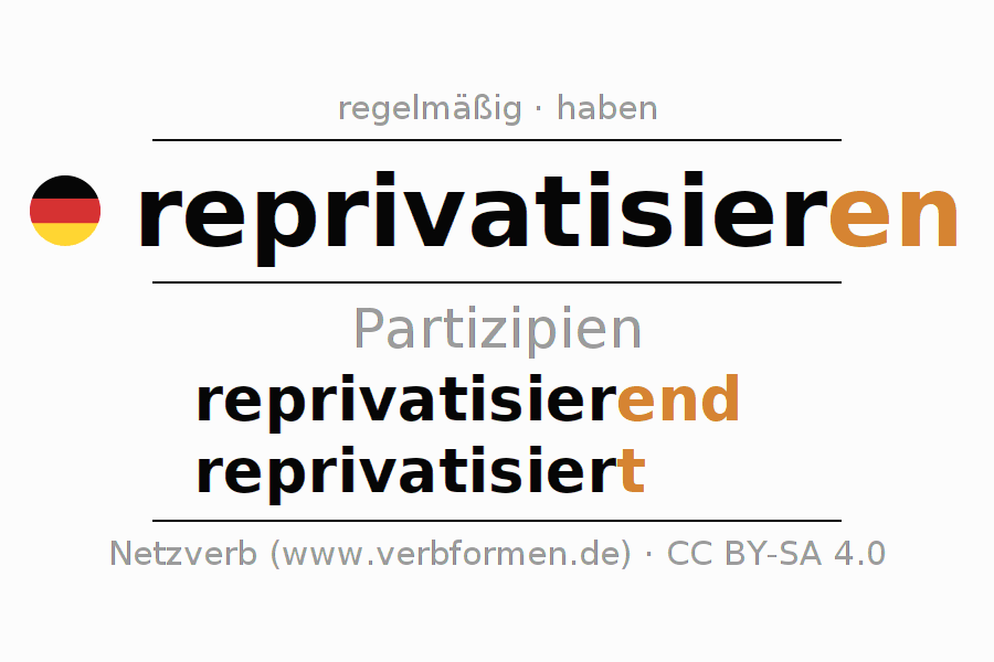Das Verb reprivatisieren vollständig in allen Personen und Numeri im Partizip Präsens Perfekt konjugiert