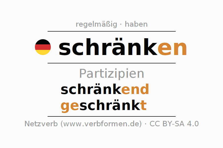 Das Verb schränken vollständig in allen Personen und Numeri im Partizip Präsens Perfekt konjugiert
