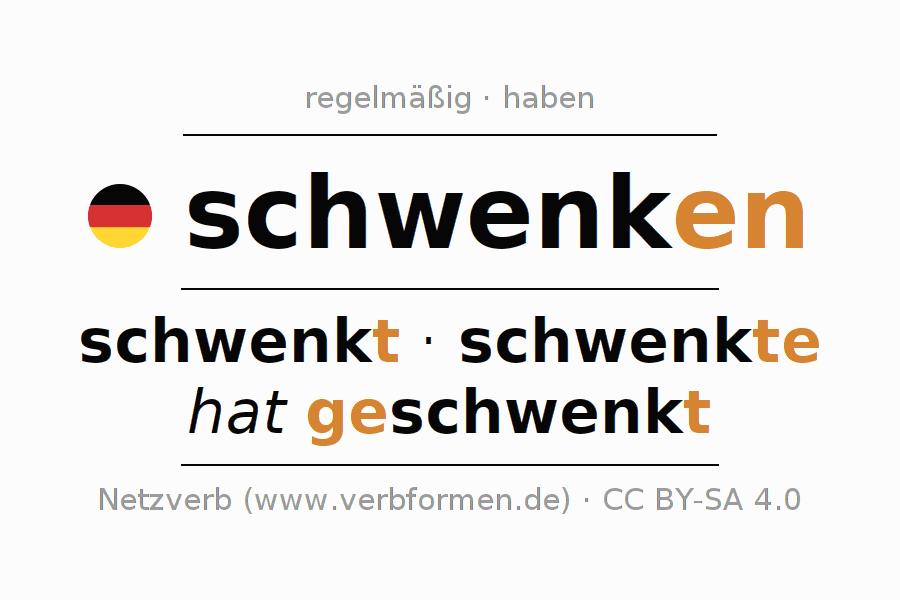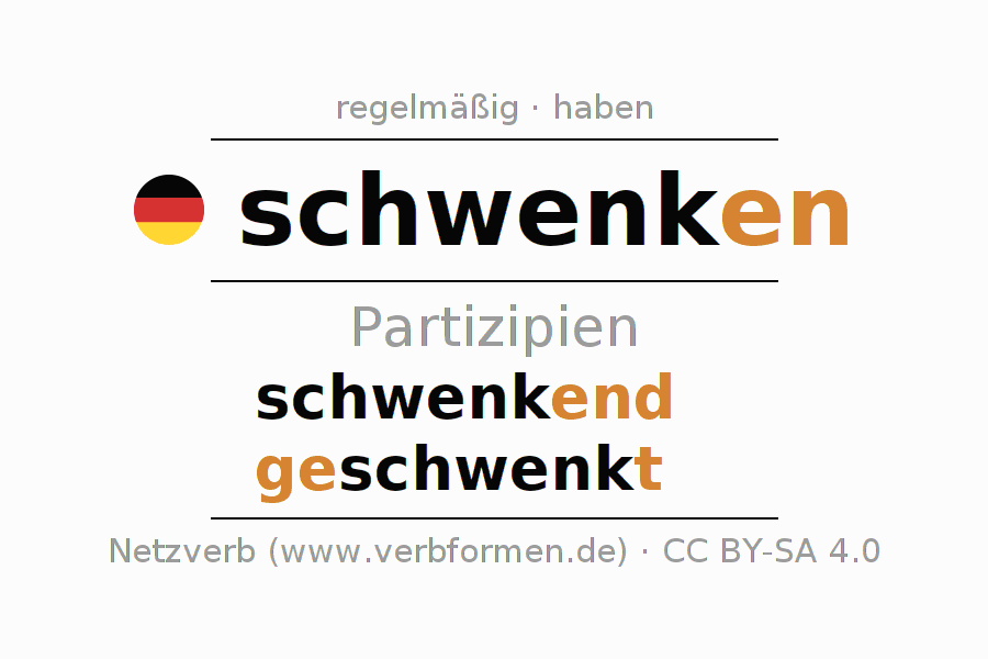 Das Verb schwenken (hat) vollständig in allen Personen und Numeri im Partizip Präsens Perfekt konjugiert